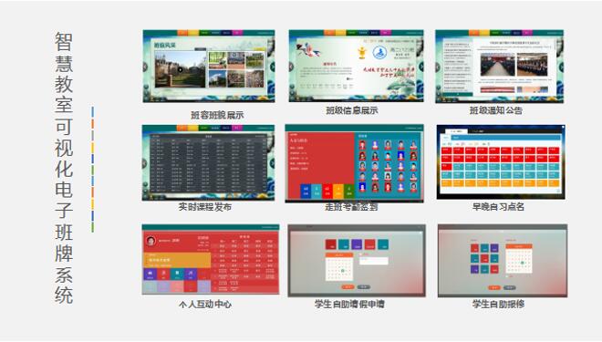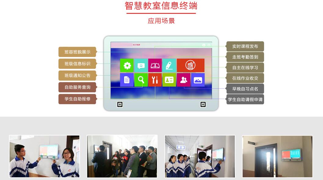 電(diàn)子(zǐ)班牌終端是(shì)安裝在校(xiào)內(nèi)各個(gè)教室門(mén)口的(de)交互式智慧教室信息終端,是(shì)一(yī)款2‍1.5寸多(duō)媒體(tǐ)觸控一(yī)體(tǐ)機(jī)設備,功能(néng)及信息發布、教務考勤、自(₩zì)主請(qǐng)假報(bào)修等功能(néng)及一(yī)身(shēn)的(de)智慧終端,是(shì)學生(shēng)與學校(xiào)交互的(de)重要(yàoγ)工(gōng)具,是(shì)校(xiào)園內(nèi)各系統串聯的(de)重要(yào)載體(tǐ)。