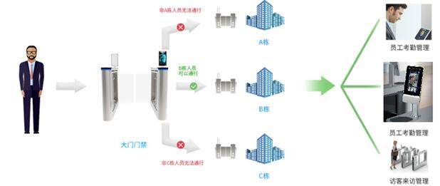 智慧出入主要(yào)覆蓋機(jī)關大(dà)樓特殊出入位置,通(tōng)常各出入口根據現(xiàn)場(chǎng)情況可(kě)分(fēn)為(←wèi)有(yǒu)人(rén)值守與無人(rén)值守兩種方式。各出入口配合智能(néng)化(huà)設備實現(xiàn)對α(duì)出入場(chǎng)所的(de)各類人(rén)員(yuán)身(shēn)份信息的(de)核驗。 l 有(yǒu)人(rén)值守模式 現(xiàn)場(chǎng)部署“通(tōng)軟身(shēn)份識别一(yī)體(tǐ)機(jī)”實現(xiàn)對(duì)進出人(rén)員(yuán)身(shēn)份信息核驗。通(tōng)過AI認證中心對(duì)進出入人(rén)員(yuán)進行(xíng)身(shēn)份認證,一(yī)體(tǐ)機(jī)僅對(duì)人(rén∑)員(yuán)做(zuò)出識别,是(shì)否允許通(tōng)行(xíng)由保安根據身(shēn)份認證結果做(zu♣ò)出判斷;支持人(rén)臉識别及卡片兩種認證方式,其中訪客僅支持人(rén)臉識别。身(shēn)份認證通(tōng)過的(de)人(rén)員(yuán)系統會(huì)将識别記₽錄上(shàng)傳至服務端保存。