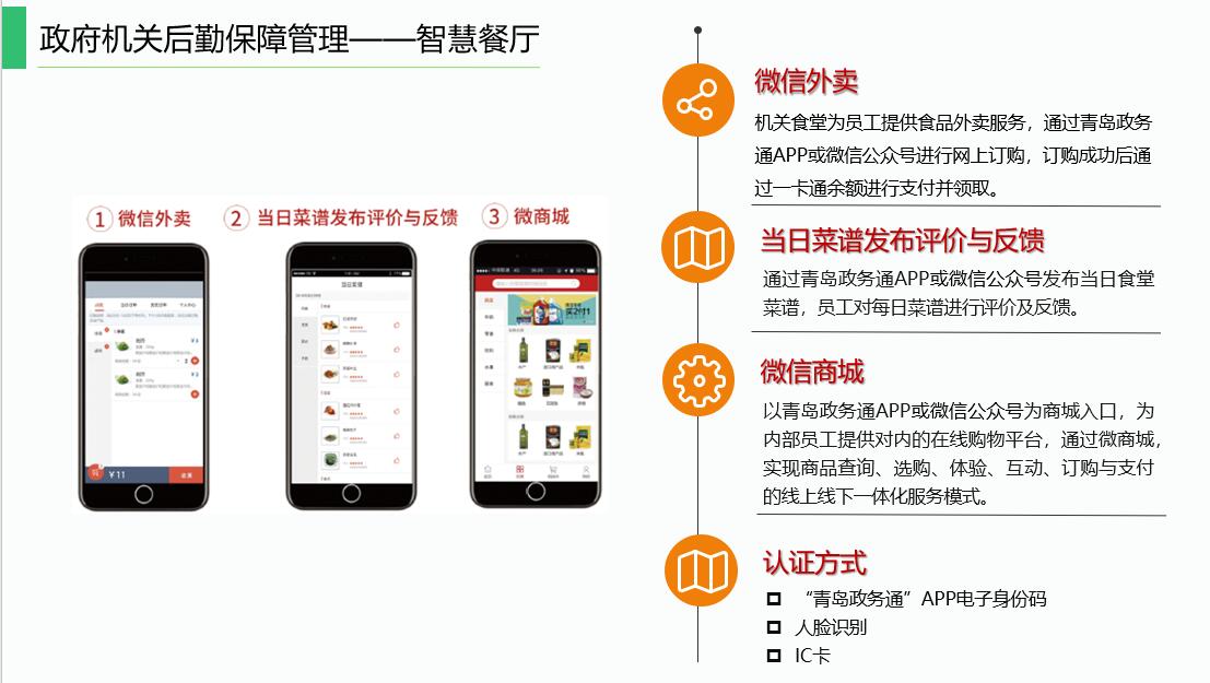 打造智能(néng)化(huà)運營體(tǐ)系,實現(xiàn)“互聯網+餐廳”的(de)智慧餐廳管理(lǐ)新模式。可(kě)采用(yòng)卡、碼、臉任意×一(yī)種方式扣款,滿足機(jī)關定額消費(fèi)、補貼消費(fèi)等多(duō)種消費(fèi)需求;可(kě)增加移動端功能(néng)應用(yòng),≈例如(rú):自(zì)助充值、消費(fèi)查詢、人(rén)臉采集、自(zì)助訂餐、自(zì)助挂失、訂餐評價、菜品早知(z₩hī)道(dào)、通(tōng)知(zhī)公告、微(wēi)商城(chéng)等。